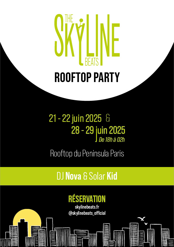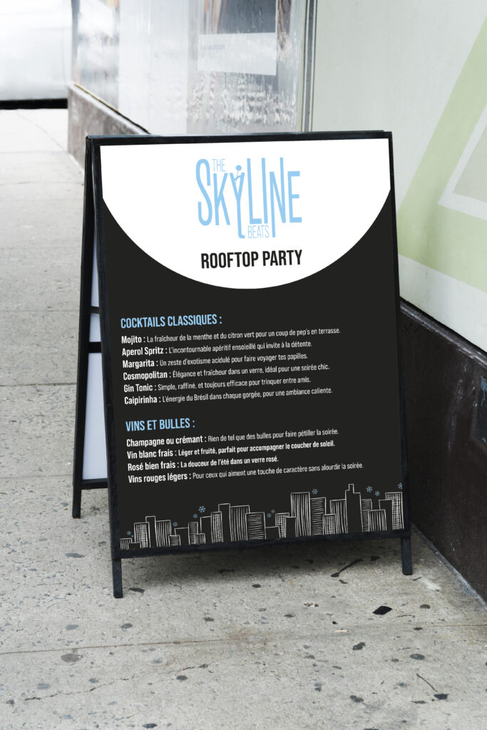 The Skyline Beats est une série de soirées rooftop électro ancrée dans l’univers urbain et nocturne. L’identité visuelle s’inspire de la skyline, des lignes architecturales et des codes du néon pour créer un impact immédiat et reconnaissable.
